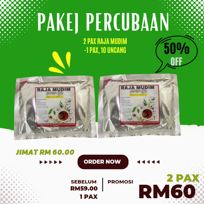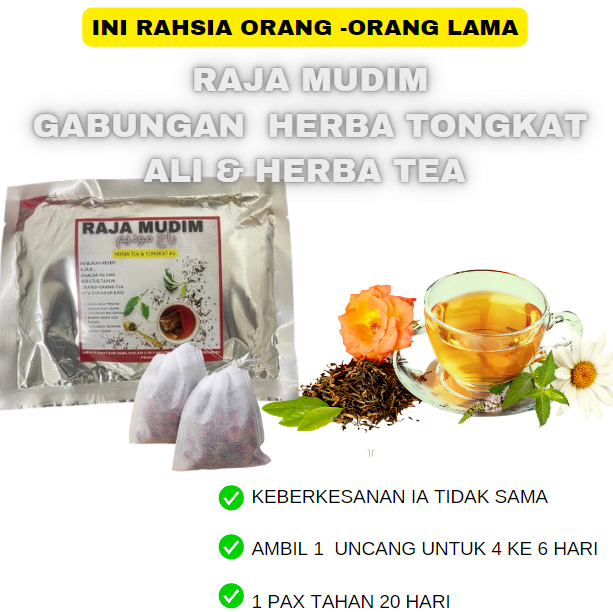 Raja Mudim –RAJA MUDIM ambil resepi warisan ni — tapi modenkan jadi uncang teh herba siap pakai.